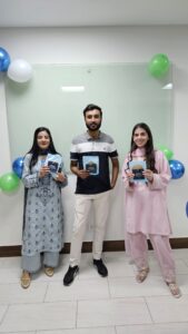 The opening of a new office was celebrated with a small inauguration event. The ceremony starts with the ribbon-cutting performed by CEO Mr. Uzair Imtiaz, CTO Mr. Arham Nadeem, and COO Mr. Talha Bajwa. Managers and team members gather with them to celebrate this event for the company.