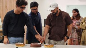 The opening of a new office was celebrated with a small inauguration event. The ceremony starts with the ribbon-cutting performed by CEO Mr. Uzair Imtiaz, CTO Mr. Arham Nadeem, and COO Mr. Talha Bajwa. Managers and team members gather with them to celebrate this event for the company.